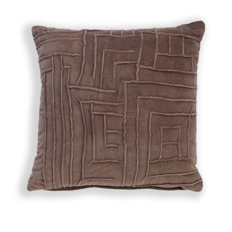 Embroidered geometric cotton velvet cushion