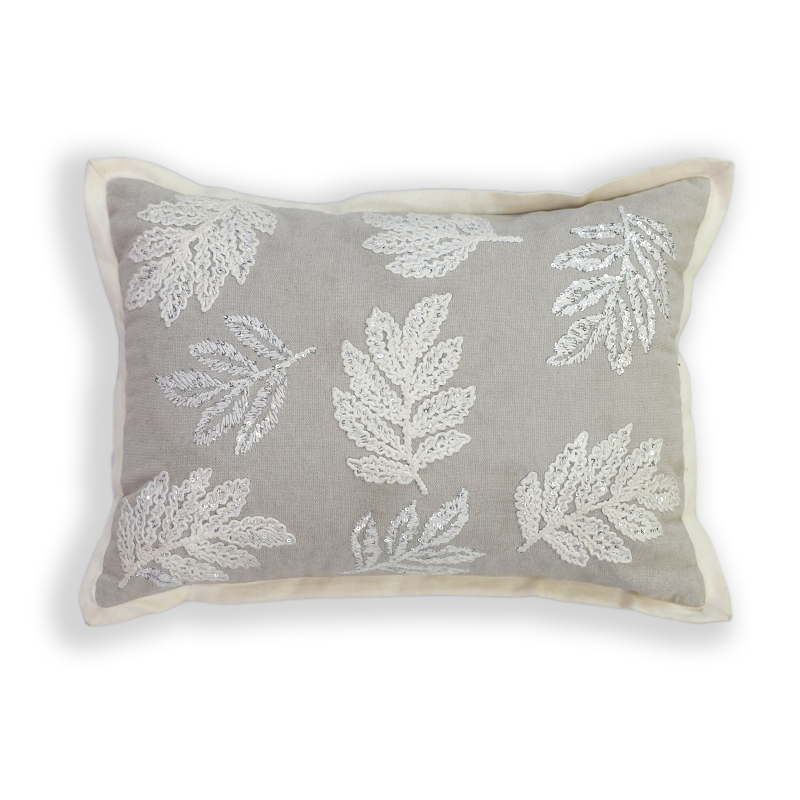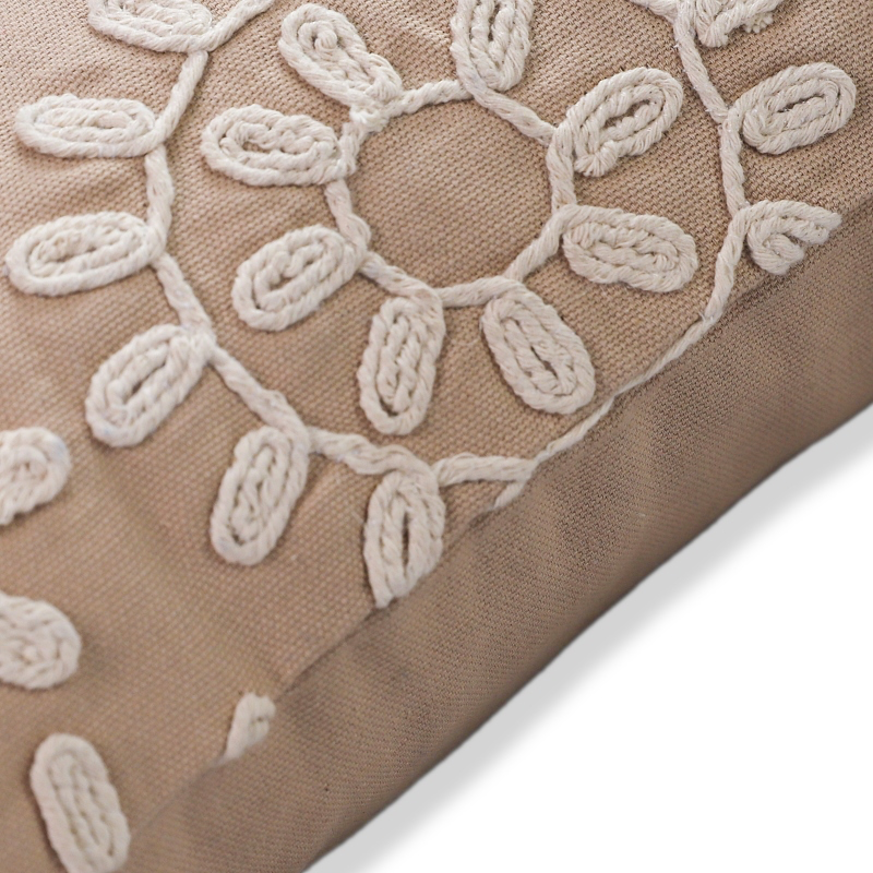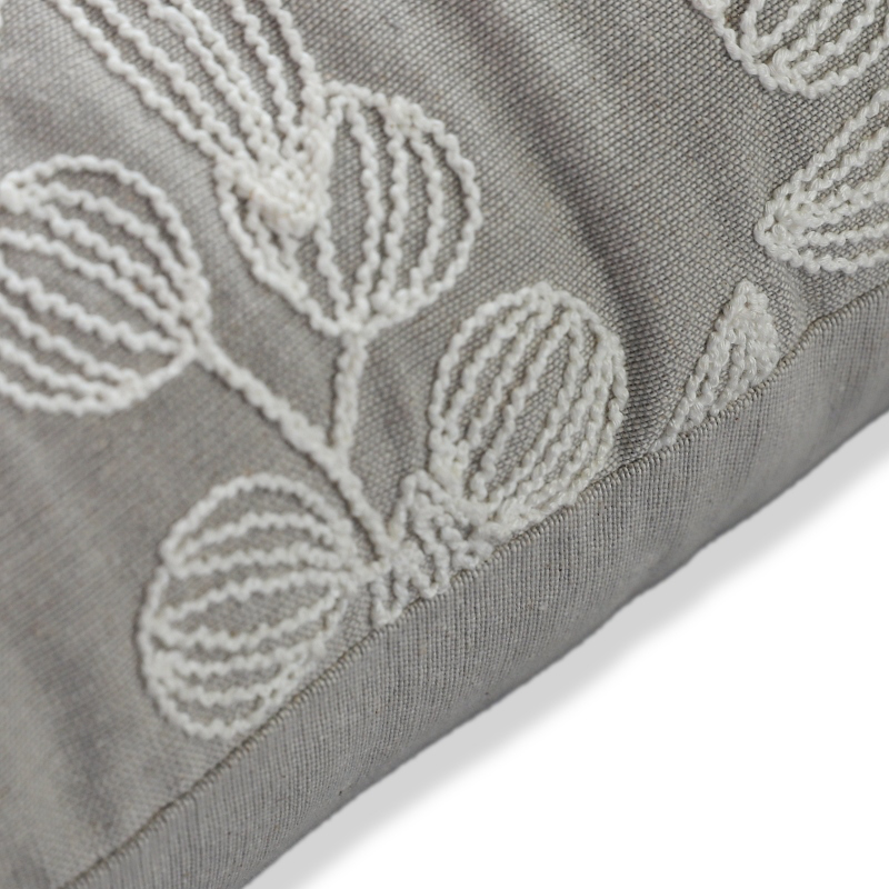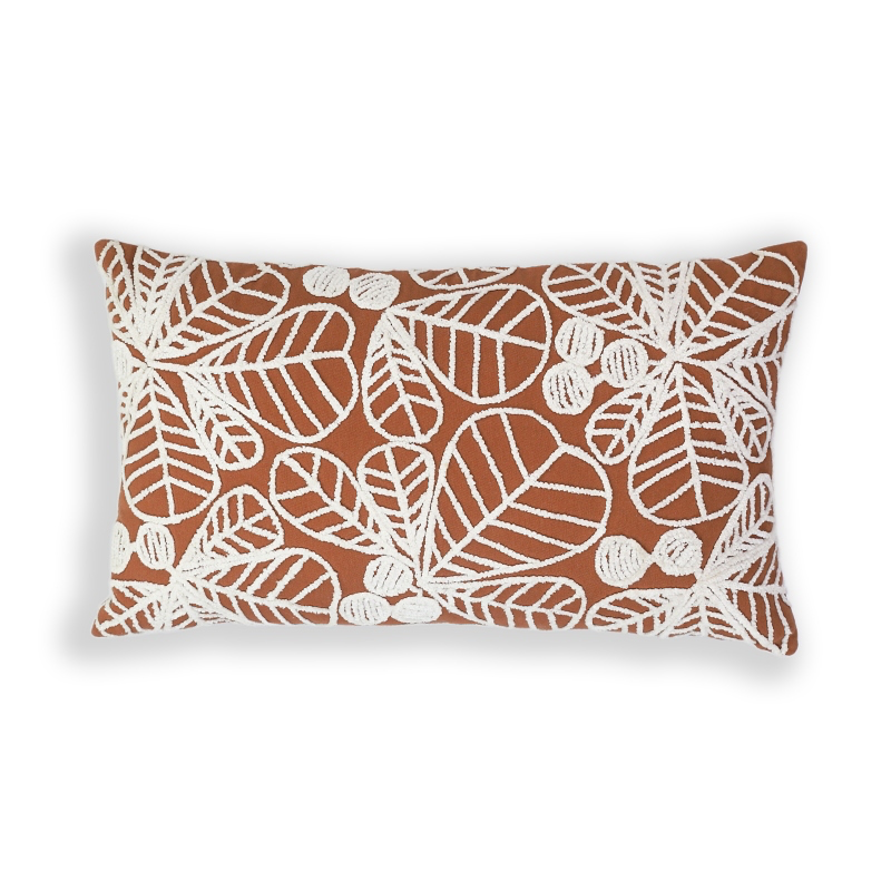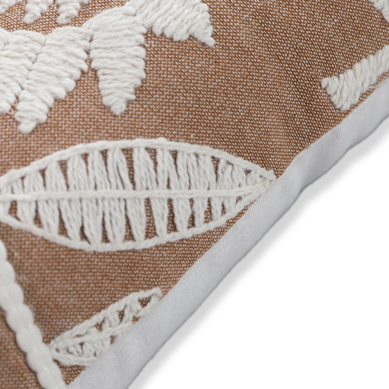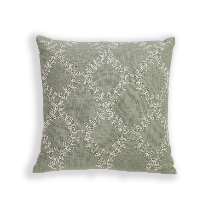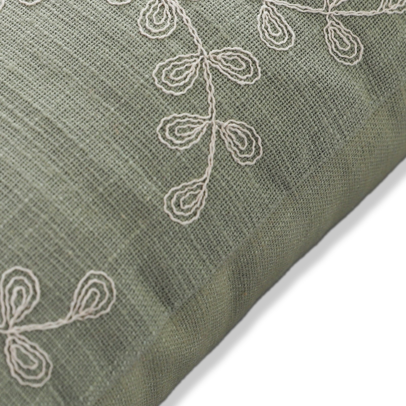 Embroidered foliage cotton cushion
