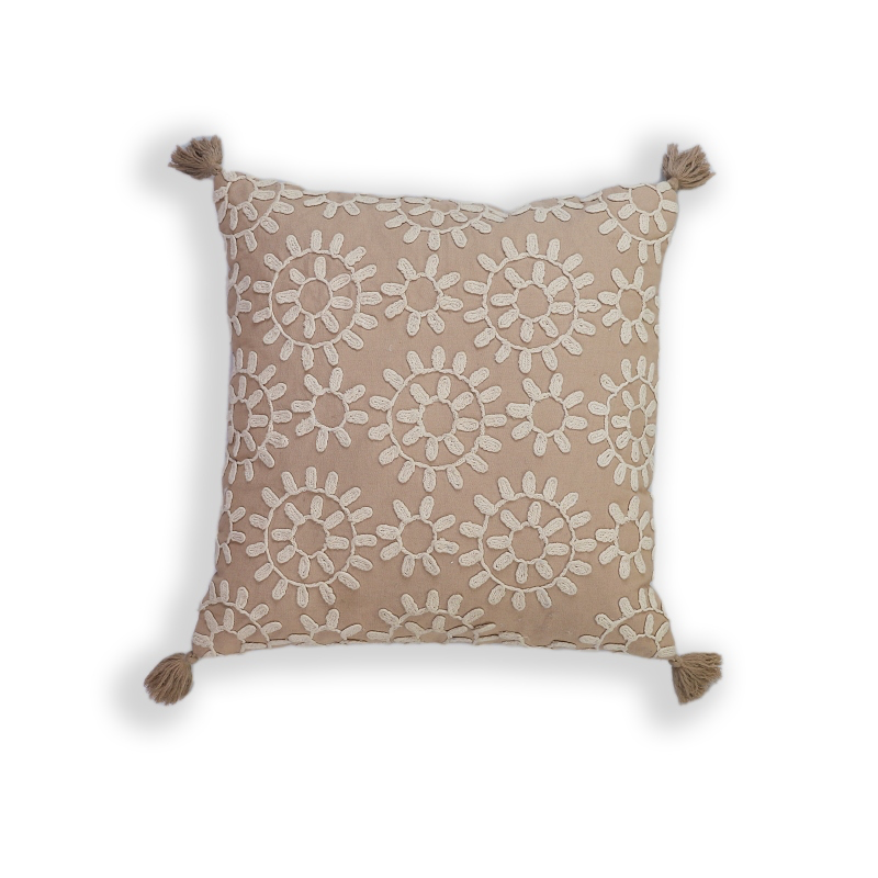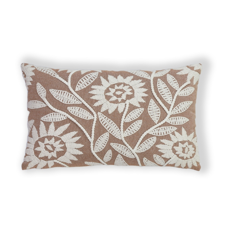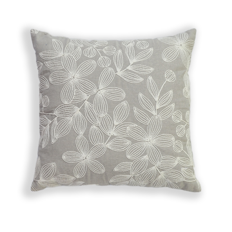 Embroidered floral cotton cushion
