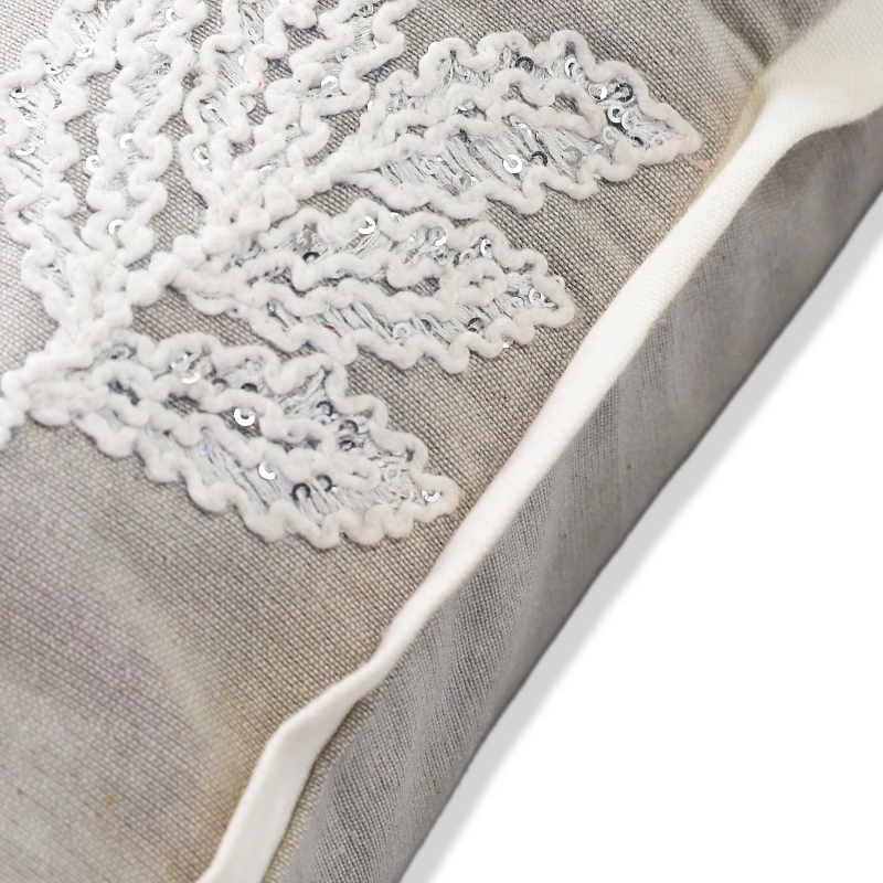 Handcrafted embroidery with sequin embellishment for a premium finish. Flanged border adds structure and sophistication. Size: 35…